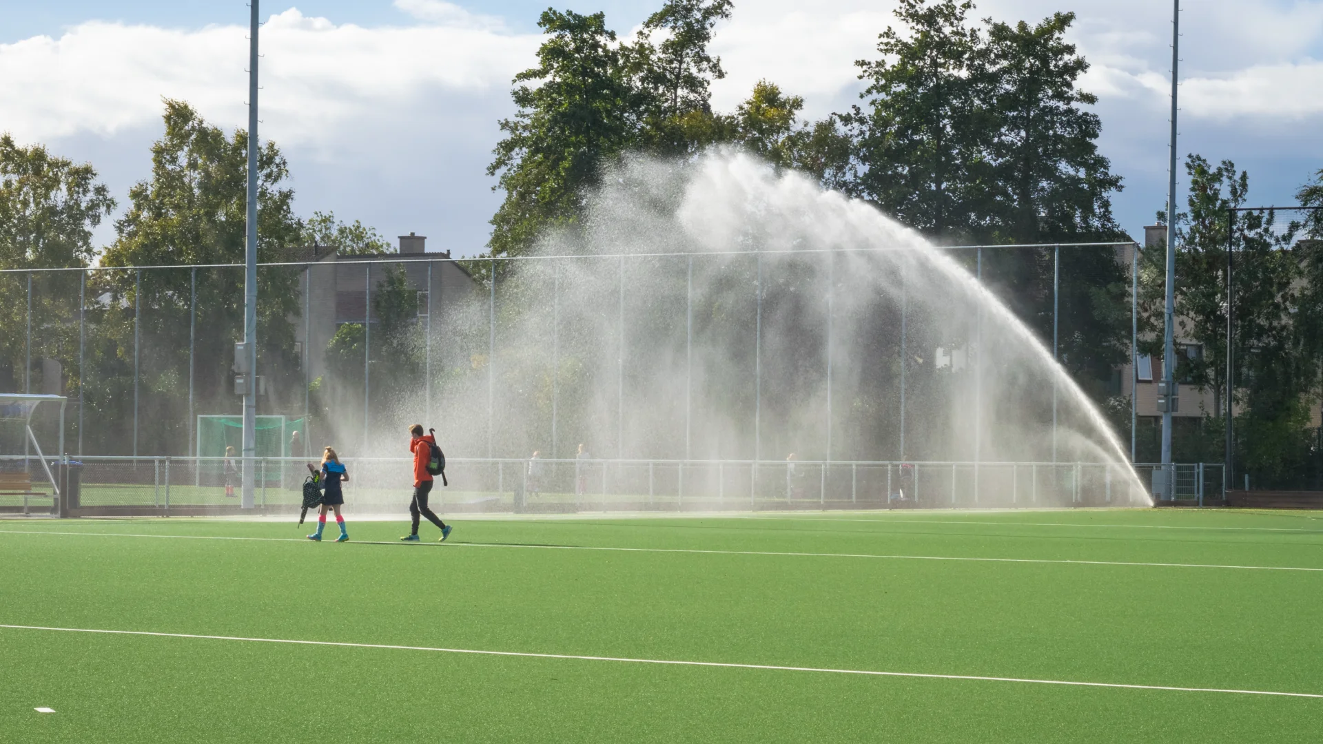 Handmatig sproeien kost veel tijd en water. Een modern systeem neemt dit werk uit handen en sproeit precies wanneer dat nodig is, bijvoorbeeld ’s nachts. Zo verdampt er nauwelijks water en is het veld ’s ochtends weer klaar voor gebruik.