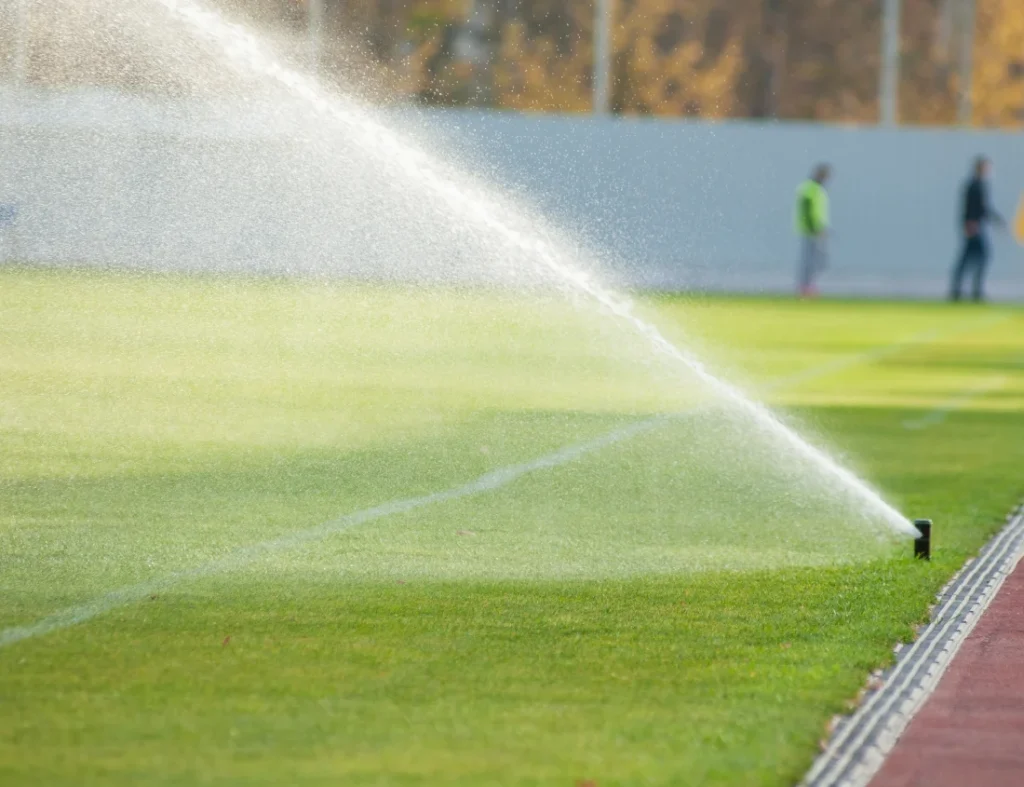 Een sportveld vraagt om een andere aanpak dan een tuin. De installatie moet onverwoestbaar zijn, veilig voor de spelers en slim omgaan met grote hoeveelheden water.