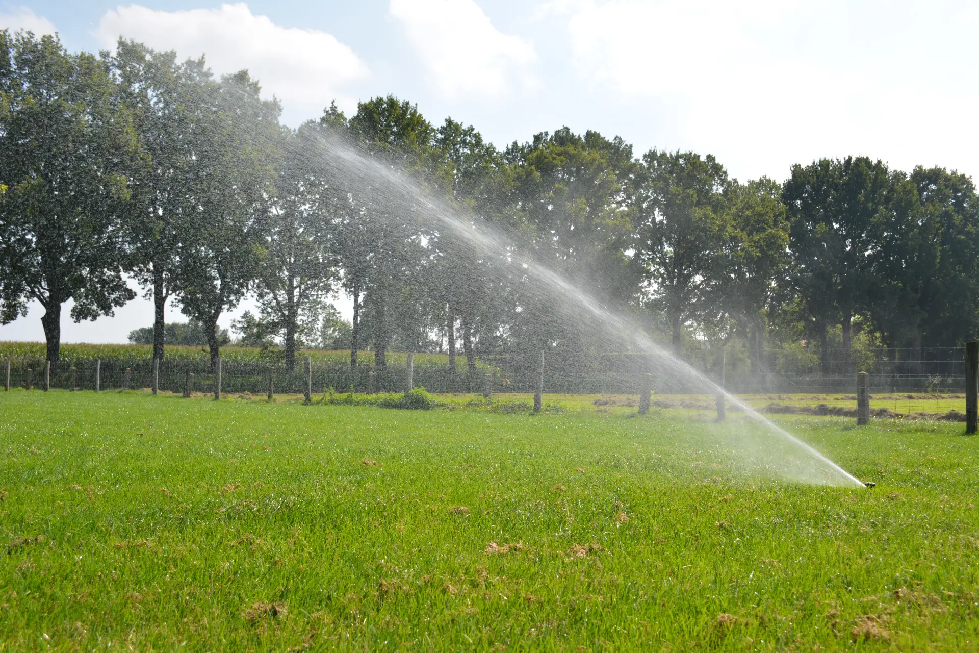 Bij dit project in Woudenberg was een goede verdeling van de sproeizones essentieel. We hebben gekozen voor krachtige pop-up sproeiers die een groot bereik hebben, maar die na gebruik weer volledig in het gazon zakken. Hierdoor blijft het weidse uitzicht over de tuin en de aangrenzende velden behouden en kan er zonder hinder gemaaid worden. Het resultaat is een zorgeloze tuin waar je alleen maar van hoeft te genieten.